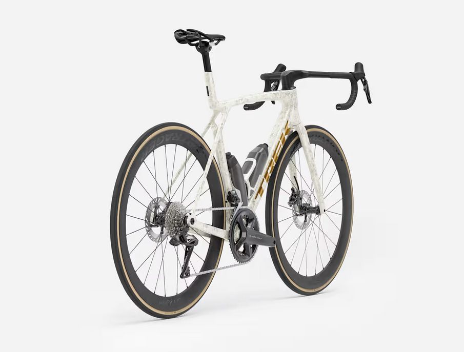 A Madone SLR 7 8ª Geração é uma bicicleta de estrada leve e aerodinâmica, própria para corridas. Seu quadro em carbono OCLV Carbon Série 900 faz o peso ficar superbaixo e os ganhos aerodinâmicos serem maiores, enquanto a tecnologia IsoFlow permite que você corra mais rápido sem perder o conforto. Ela vem pronta para as corridas, equipada com um conjunto de componentes sem fio Shimano Ultegra Di2 2x12, rodas de carbono Bontrager Aeolus Pro 51, um guidão/avanço integrado Trek Aero RSL (peça única em carbono), e Caramanholas e Suportes RSL Aero, que reduzem ainda mais o arrasto aerodinâmico.