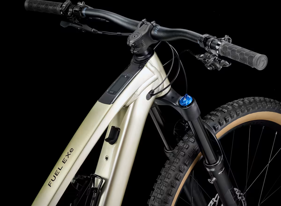 A Fuel EXe 8 é uma mountain bike elétrica de alumínio pronta para trilhas que auxilia você silenciosamente nas subidas para que você tenha toda a potência necessária nas descidas. Tal como a sua equivalente em carbono, possui a aparência e o comportamento de uma bicicleta de trail tradicional, mas com o suporte adicional de um pequeno mas poderoso sistema de acionamento por conjunto de coroas e pinhões harmônicos com uma sofisticada unidade de visualização no tubo superior e um controlador compacto. Ela vem pronta para arrepiar com os componentes atualizados mais importantes, como um pacote de suspensão FOX, rodas largas Bontrager Line Comp Tubeless Ready e uma transmissão Shimano XT de 12 velocidades.