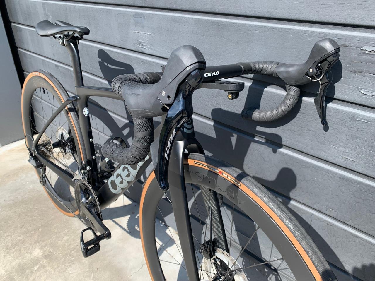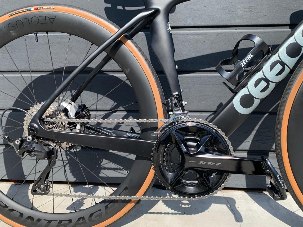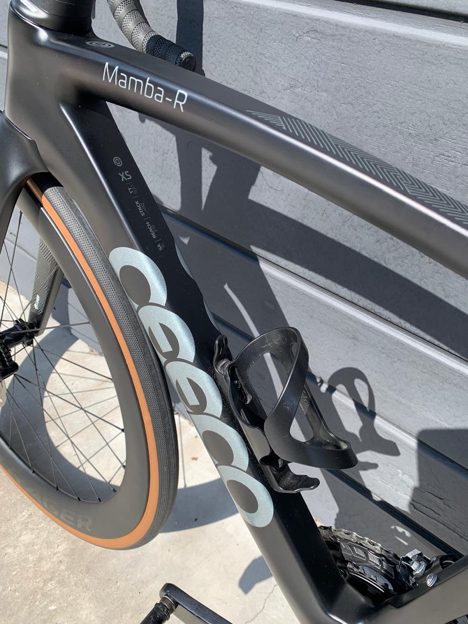 - Quadro: Ceepo Mamba-R (Carbono de alta modulação) – Tamanho XS (50cm).
