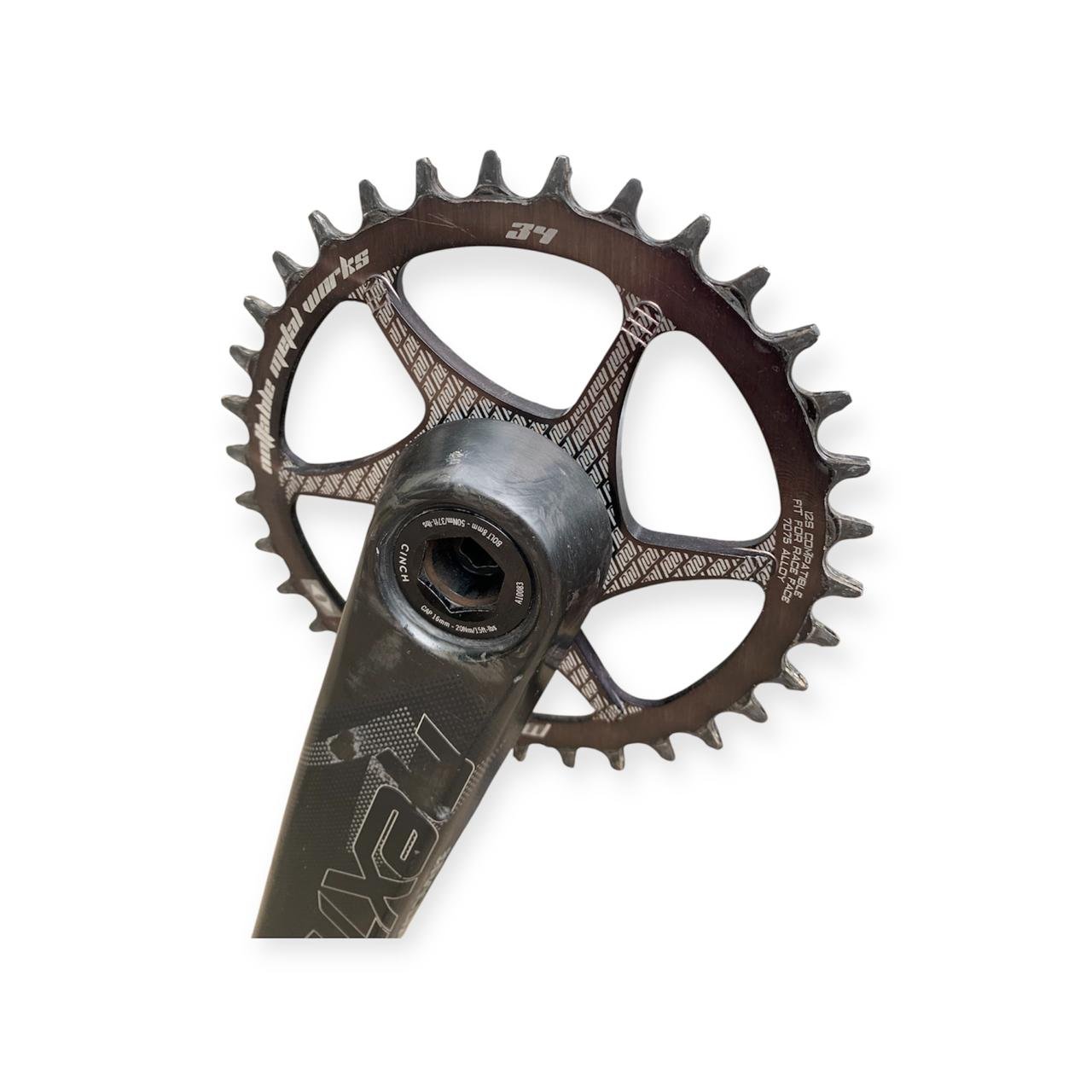 - Versatilidade Cinch: Sistema de montagem de coroa Direct Mount da RaceFace (Cinch), que permite trocar coroas ou converter para diferentes padrões de eixo facilmente.
