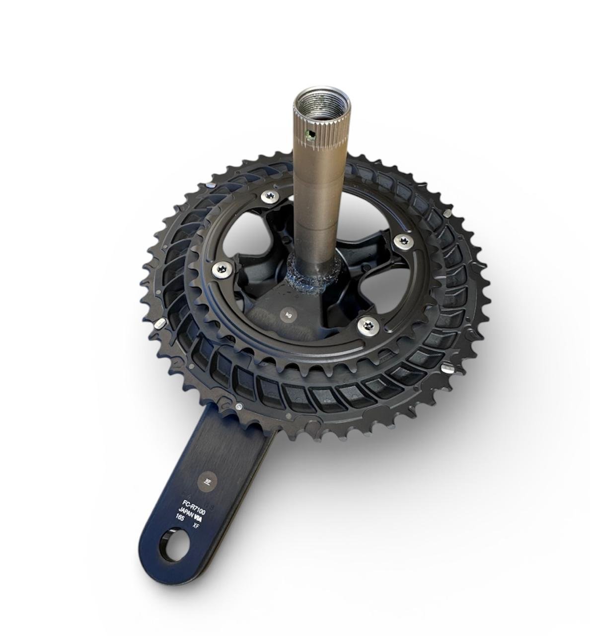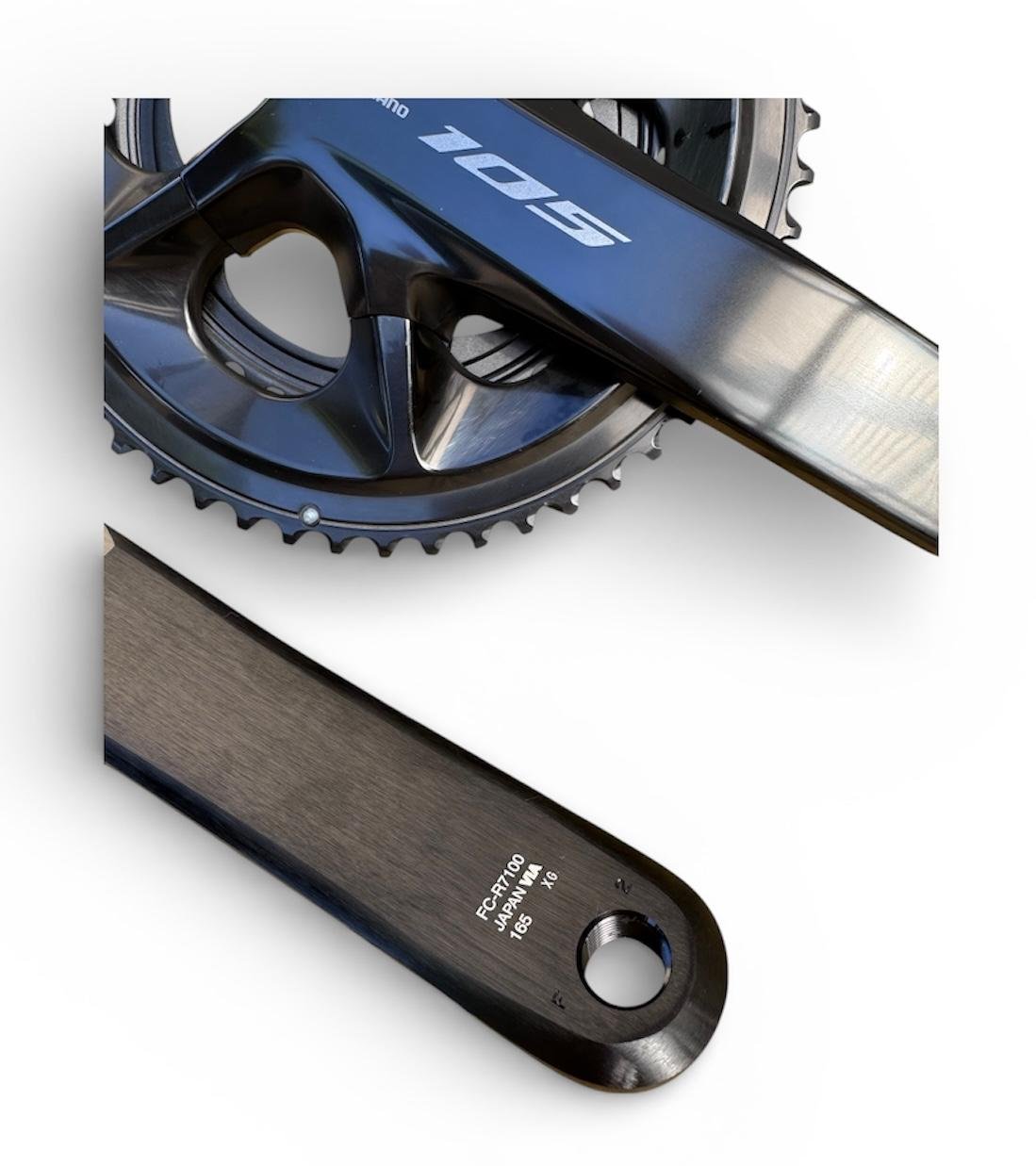 O pedivela Shimano 105 FC-R7100 traz um novo design que equilibra com precisão leveza, rigidez e eficiência, entregando excelente desempenho rotacional e transferência de potência. Construído com a consagrada tecnologia HOLLOWTECH II, utiliza alumínio oco para reduzir peso sem comprometer a resistência estrutural. As coroas contam com nervuras de resina na parte traseira, exclusivas do projeto Shimano 105, proporcionando uma redução significativa de peso e trocas de marcha rápidas e precisas. O acabamento anodizado em preto brilhante confere um visual sofisticado e moderno ao conjunto.