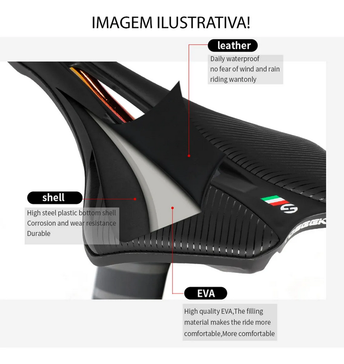 - Canal Antiprostático: O recorte central vazado garante o fluxo sanguíneo ideal e evita dormências, mesmo após horas de selim.